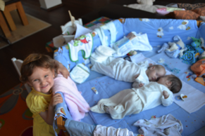 Zu Hause klappt es super, wir haben sogar schon so etwas wie einen Rhytmus. Die Zwei schlafen recht gut, wollen aber ständig gekuschelt werden. Aber das ist nach den vielen Wochen im Krankenhaus ja kein Wunder.