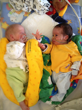 Beide wachsen gut und nehmen fleißig zu. Paul wiegt 2.405g und durfte heute nach Hause!!!