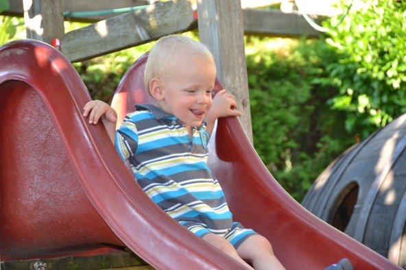 Bei den Equalizern hat er allerdings ganz schön den Verkehr aufgehalten. Er sollte ja eigentlich nur durch krabbeln, Luis hat sich aber immer an die Stange gehängt und ist geschaukelt.