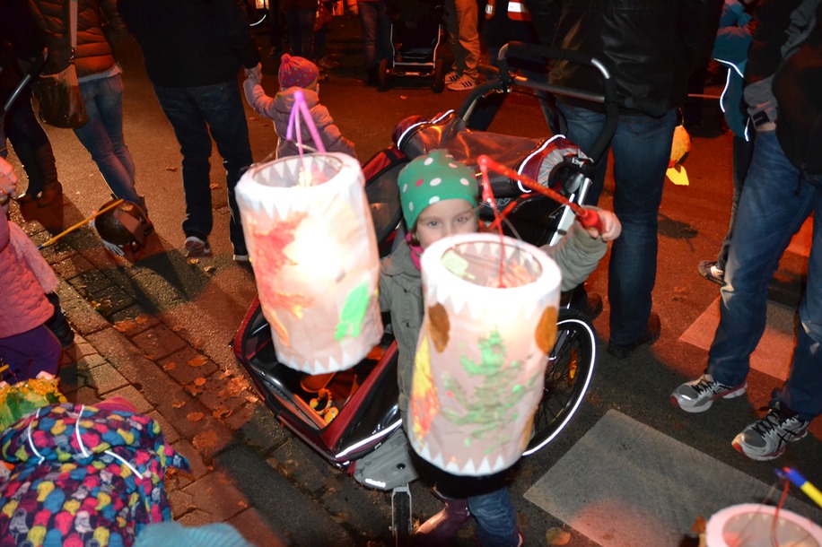 Das war sooooo schön! Wir sind quer durch´s Dorf gelaufen mit unseren Laternen. Sankt Martin war mit einem riesigen Pferd dabei und am großen Sankt-Martins-Feuer haben wir jeder noch ein Weckmännchen bekommen.