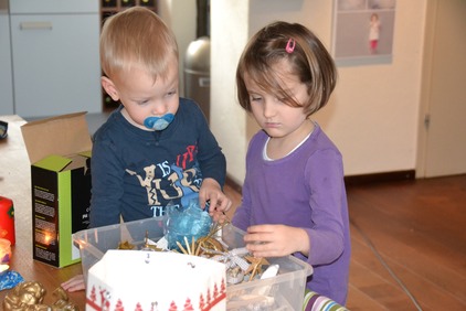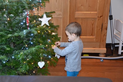 Das Christkind und der Weihnachtsmann haben soooo viel zu tun, so dass wir ihnen erst mal tatkräftig unter die Arme greifen und den Weihnachtsbaum schmücken.