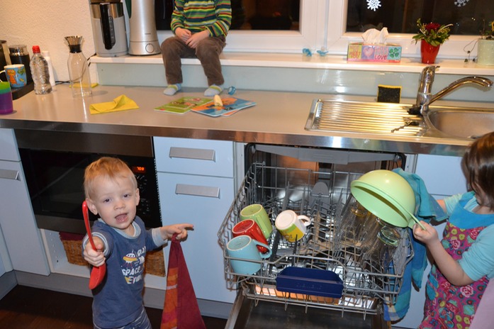 Und dann, wenn die Mama total genervt von uns ist, dann sind wir besonders lieb und helfen sogar im Haushalt:
