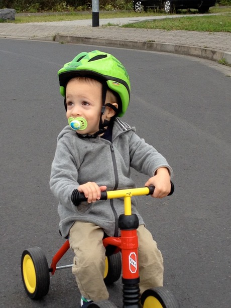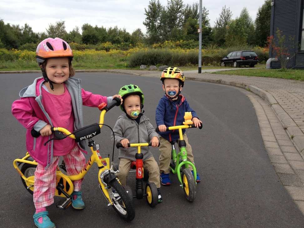 Luis und Paul streiten sich abwechselnd um Laufrad und Pukywutsch. Da müssen wir noch ein wenig an der Technik üben, aber ansonsten läuft das auch schon ganz gut. Mit ein wenig Übung, können wir den nächsten Familienausflug planen!