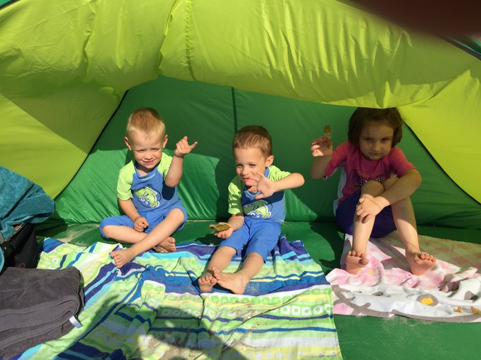 Meine Mama hatte ja Angst dass die Nächte nicht so toll laufen, weil wir alle Fünf in einem Zimmer geschlafen haben, aber das war super. Mama und Papa waren ja die ganze Zeit da, da haben wir sogar alle drei durchgeschlafen. Komisch - zu Hause klappt das nie so gut?!